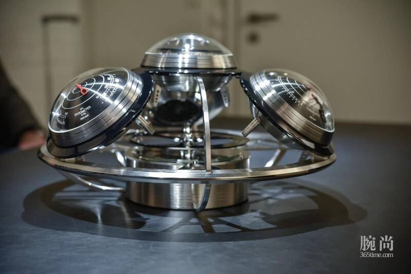 概要速览:376mm直径 x 209mm高度,15公斤重,精钢/黄铜/青铜材质外壳--L'Epée打造的座钟机芯:124mm直径 x 92mm高度,2.5Hz(18000vph)振频,8日动储,手动上链--时钟,气压计、温度计、湿度计--52000瑞郎(税前)