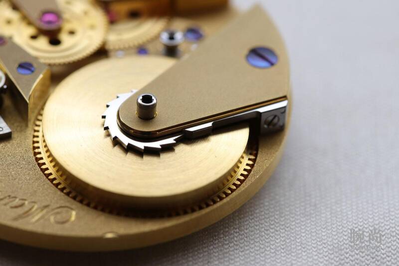 手表的灵感源自19世纪的怀表,他们在形式和功能上区分都很明显。这只腕表表壳直径为39毫米,该机芯让人联想到怀表,首先是它具有40小时动力储存的,同时时间设定也是通过一把钥匙完成的。充满了不寻常的创造性的想法。首先它的构造方式非同寻常,摆轮和擒纵装置前后间分开。分别可调整,18,000bph的振动频率的核心游丝部分运行于自由摆动的表盘上,而擒纵机构在表壳背面。
