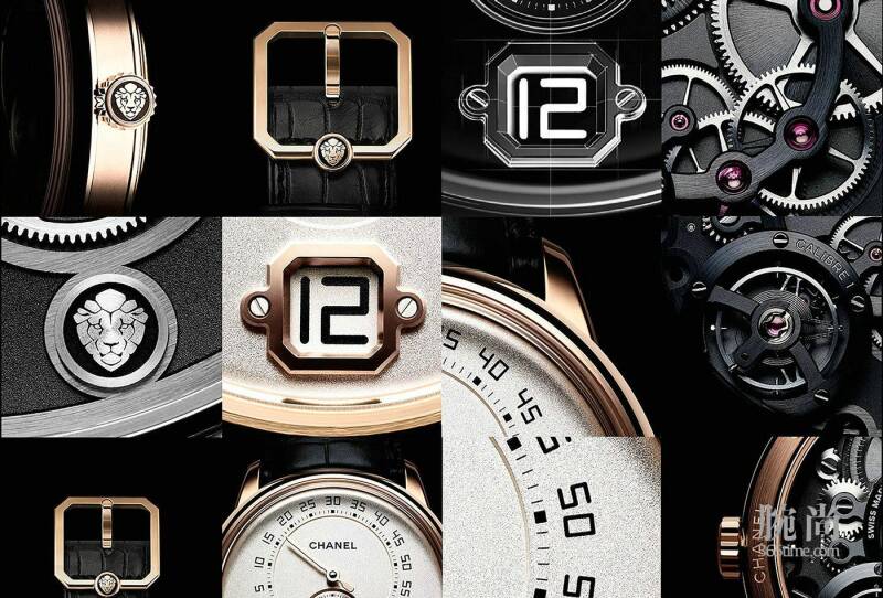 由于这是香奈儿第一款搭载自制机芯的腕表,无论在外观、功能还是默认的佩戴者性别上,都有别于以往人们对于品牌的印象。然而从诸多细节处依旧能发现品牌经典的影子;像是那亮眼的狮子图腾,它代表香奈儿自制机芯的专属印记,彷佛守护神般安置在腕表机芯、表冠及表扣上。另一项具代表性的设计则是摆轮,圆形之中展露出香奈儿女士钟爱的五芒星,并以每小时28,800次的振频运转。而经过类钻碳镀层(Amorphous Diamond Like Carbon)的零件以雾面及亮面交错,边框曲线修饰犹如香奈儿经典斜纹软呢外套的滚边设计。