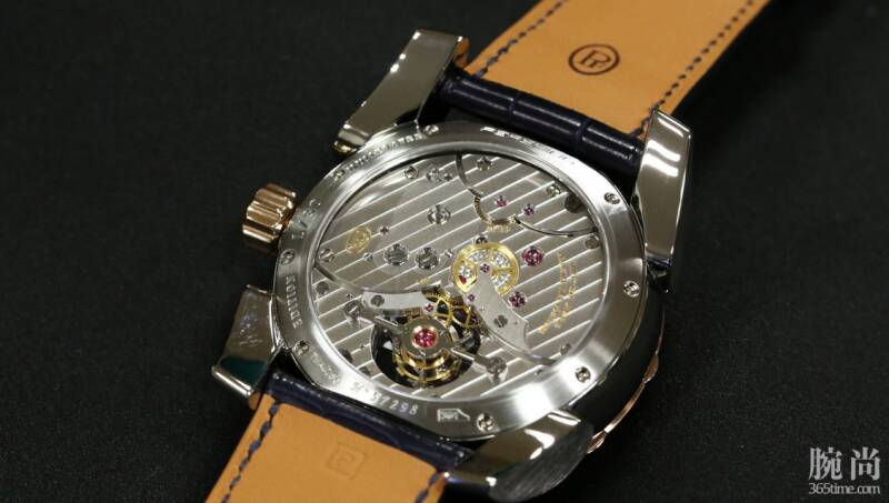 Pershing Tourbillon Abyss陀飞轮腕表采用了,帕玛强尼自制的PF510腕表机芯。它拥有足以维持一周的动力存储,6点钟位置配备了华丽的陀飞轮,表壳更是巧妙融合了钛金属的摩登魅力与玫瑰金的尊贵气质。该表款完全由帕玛强尼表厂研发,限量发行30枚并逐一编号。