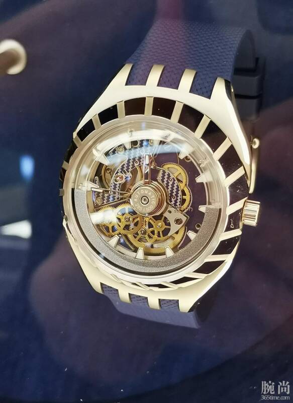 这次推出的斯沃琪Flymagic系列限量腕表有着45毫米的大表盘,其内部搭载了SISTEM51 表芯,除了Nivachron游丝技术之外还增加了15 件零件,原有的 Signature 圈形摆陀放到最上层,给人感觉仿佛是把这款手表反转后戴在手上,其12点位置还有一个类似风车造型的小秒钟仔细观察发现其是逆时针运转,有趣而突破常规,这款腕表的动力存储达到了90小时,最贴心的是这款表除了提供适合夏天佩戴的橡胶表带之外,还额外给用户2根原装的真皮表带,并且有随表附赠拆卸小工具。