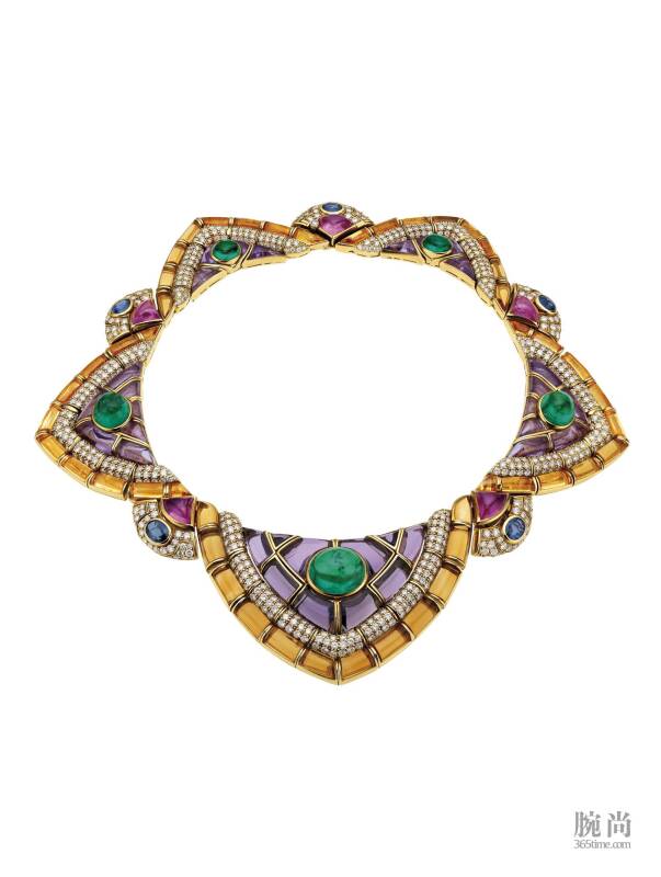 宝格丽古董典藏系列黄金镶祖母绿紫水晶红宝石钻石项链,创作于1989年