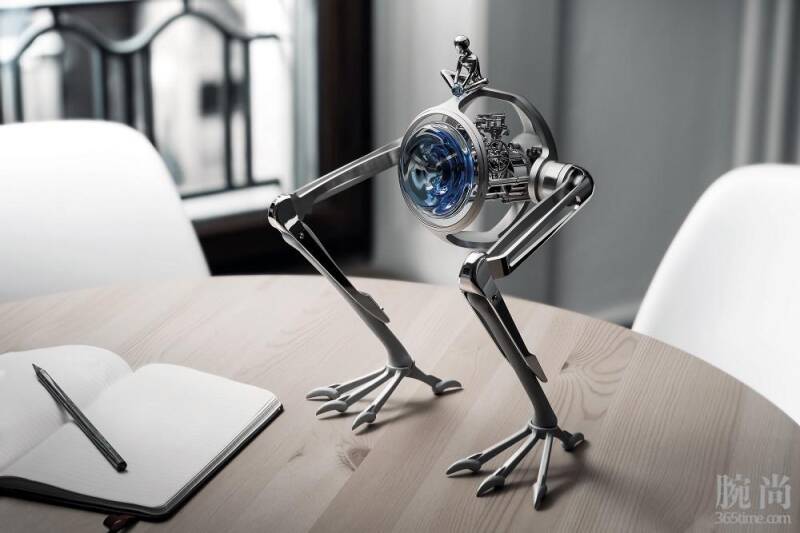 T-Rex 座钟支架的设计来自真实的霸王龙骨骼,MB&F 参考恐龙化石的3D扫描图像,创造出逼真的腿骨结构。尽管 T-Rex 的「双腿」无法移动,看起来仍然充满力量。