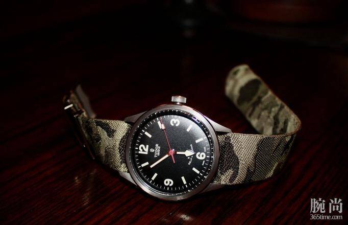 这是一枚帝舵HERITAGE RANGER系列79910织纹表带腕表,这是一枚军表风格的腕表,这枚腕表延续1950和1960年代帝舵的表盘特色,时标涂有夜光物质,搭载2824型号自动上链机芯,表壳为不锈钢材质,表带具有绿色迷彩织纹图案,表径41毫米,防水150米,参考价格约2~3万元(以实际价格为准)。