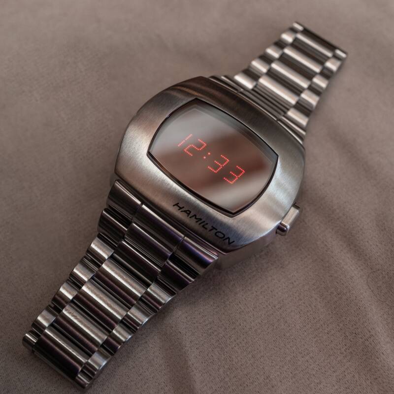 汉米尔顿普尔萨(Pulsar)腕表是太空时代的标志性发明之一。开创性的技术颠覆市场,未来派外观令其成为杰克·尼科尔森(JackNicholson)、乔·弗雷泽(Joe Frazier)、艾尔顿·约翰(Elton John)和基思•理查兹(KeithRichards)等前卫思想家和时尚领袖的挚爱之选。我们很荣幸能够重新诠释这款风格鲜明、改变世界的数字腕表--汉米尔顿PSR腕表。