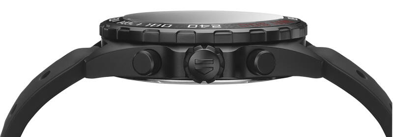 这枚石英款计时码表的43毫米不锈钢表壳构成了一级方程式印地500 2020特别版的基础,该腕表在外观上的隐形珠黑色DLC喷砂涂层与众不同。这种哑光的黑色饰面有助于减轻这种设计的视觉效果,同时仍能使厚实的测速仪表圈脱颖而出。测速外圈采用喷砂黑色陶瓷材质。在1点钟位置有深红色" Indy 500"粗体字样。底盖上还印有特殊的Indy 500雕刻图案。表壳额定200米防水。