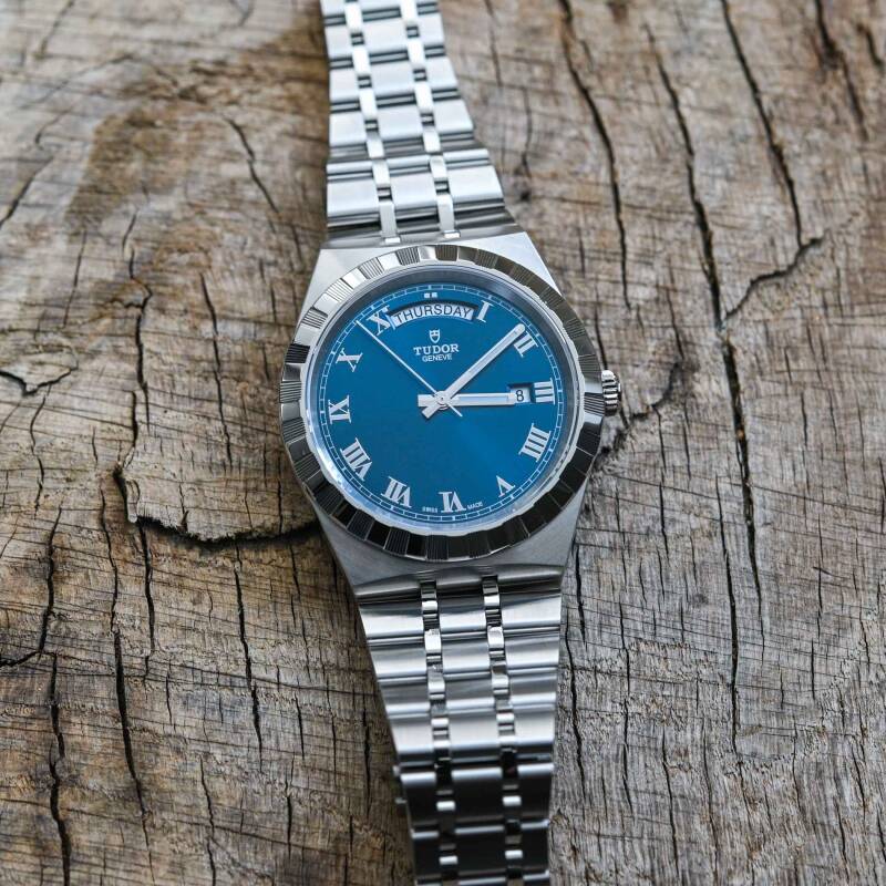 上世纪70年代的设计理念,即一体式链带结构的运动风格手表,现如今已成为了一种潮流趋势。夸张吗?并不,诸多品牌,从顶级到亲民,都争相涌入这个拥有巨大需求的市场以期分得一杯羹。而在皇家橡树和鹦鹉螺等具有代表性意义的款式的推动下,我们可以看到,这个市场如今已被划分的更加细致,而在这之中,消费者们也有了更多合理的替代之选。新近加入到这一潮流的便是帝舵,今年早些时候,他们推出了七零年代气息浓郁的Royal皇家系列。今天,我们就一起来看看该系列最大的亮点--帝舵皇家系列星期日历41mm蓝盘腕表。