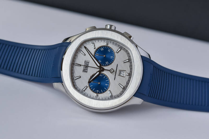 虽然跟国宝大熊猫的颜色有些不太一样,但它也可算入熊猫盘的类别。这款采用了银蓝配色的伯爵Polo计时码表仅限量发行888枚,它那外观独特的表壳、对比鲜明的元素,以及带有纹理的橡胶表带让它在众多计时码表作品当中也是极为的引人注目。将表翻转过来,便可通过蓝宝石透底表背观察其内所搭载的Cal.1160P型自动机芯。该机芯的厚度仅为5.72mm,可提供50小时的动力储备,除了带有华丽logo的蓝色摆陀之外,它还配备了导柱轮及垂直离合机制这对儿最佳组合。价格:123000人民币