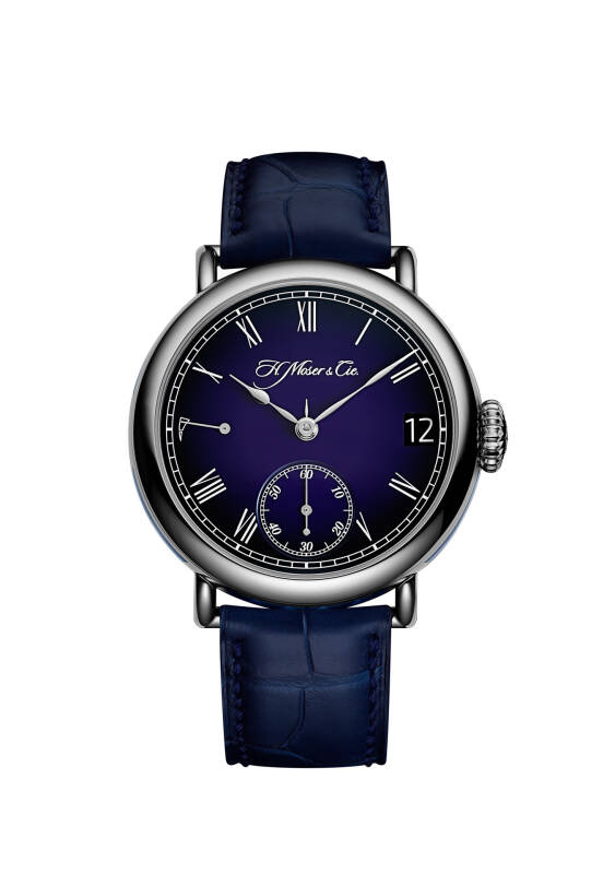 H. Moser & Cie.亨利慕时选择以传承者(Heritage)系列腕表表壳的经典造型致敬其万年历表款,展现了手工艺大师的精湛技艺。全新色调的「大明火珐琅」表盘以细腻的渐变色泽重新演绎了品牌知名fumé烟熏表盘的独特美学。此外,这一工艺绝技在传承者万年历午夜蓝珐琅腕表 (Heritage Perpetual Calendar Midnight Blue Enamel) 侧的镌刻装饰以及珐琅嵌饰的配合下更加锦上添花,缔造了过去与当下、传统与现代的巧妙联结。这款作品的很大部分灵感源自亨利慕时创始人亨利·慕时 (Heinrich Moser) 设计的复古时计,让人想起1920年代早期的一种趋势:通过精致配件将怀表转换为腕表。与此同时,由于采用了惊艳的午夜蓝烟熏表盘和高端自制机芯,该表也呈现鲜明的现代风格。