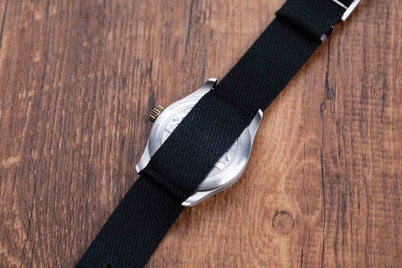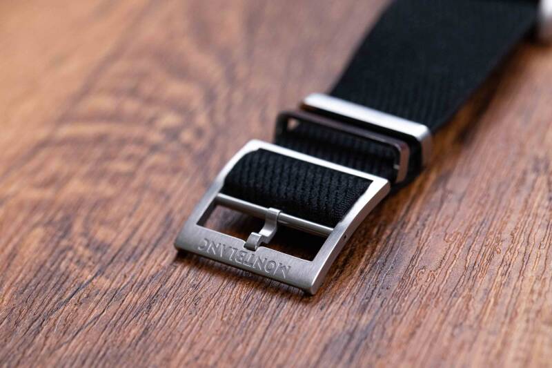这款表的直径42mm,厚度是11.2mm,因为表耳下探较狠所以能够很好的扣住手腕,而且让比例看着也显得比较紧凑。它搭配的这条NATO织物表带是由一家有着百年历史的法国织坊做的,手感摸着挺柔滑的,但是戴着是真舒服,甭管是去登山,去野炊,这条北约带都是首选。当然如果你不喜欢它的话,也有皮带和钢链可选。