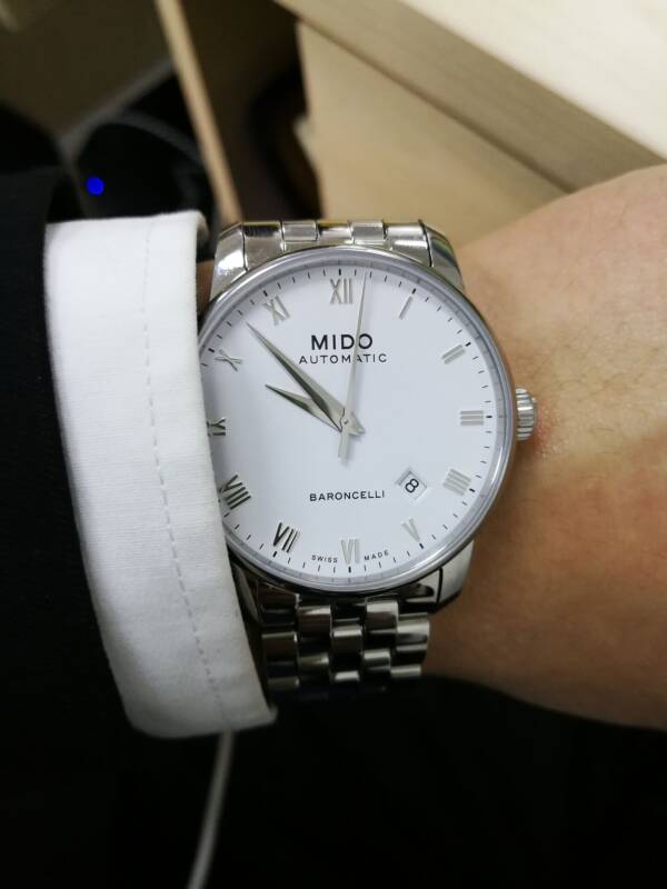 这是一枚美度贝伦赛丽系列M8600.4.26.1腕表,这枚腕表搭载自动机械机芯,且机芯经过瑞士天文台认证,表壳和表带均为不锈钢材质,具有日期显示功能,表径38毫米,防水50米,参考价格6300元(以实际价格为准)。