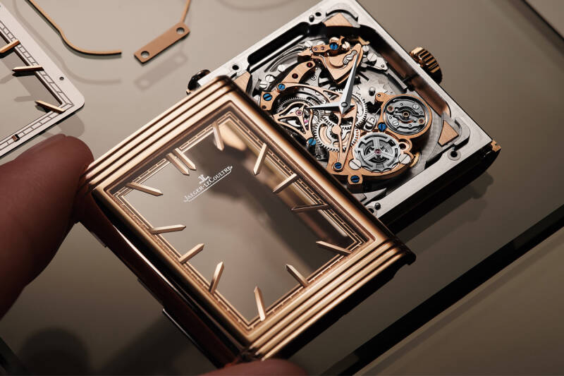 然而,积家迎难而上,于1994年发布了Reverso Répétition Minutes翻转系列三问报时腕表。这是大工坊首次将微型三问报时装置搭载于腕表中,亦是全球首款长方形三问报时机芯。