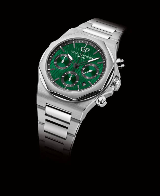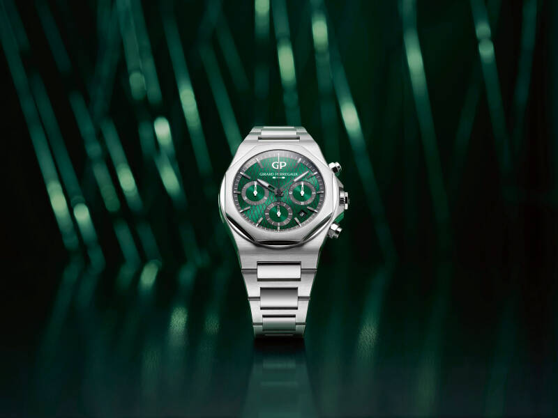 Laureato桂冠系列阿斯顿·马丁特别版计时腕表是GP芝柏表的最新力作,由品牌与汽车制造商阿斯顿·马丁拉共达 (Aston Martin Lagonda) 合作打造。其表盘铺满经典的"阿斯顿·马丁绿" (Aston Martin Green)--历经二十一次精心涂染而成,形成了七个清晰的颜色层次。来自汽车的影响还包括交叉影线的运用,一种钻石一样的图案,首见于汽车制造商阿斯顿·马丁的"AM"标识 (1921 - 1926年)。此外,该图案的灵感也来自这个英国品牌不计其数高性能跑车的夹层座椅。