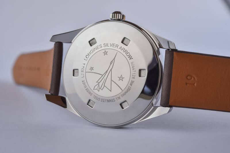 这款表是以1956年的浪琴Silver Arrow银箭腕表作为蓝本打造出来的,品牌在此之前曾将之作为过设计灵感的来源,但这一次他们则更加注重细节方面的还原。时标作为原版银箭腕表身上最独特的设计元素,在2021年款的新银箭身上再度得到了展现。它们被放置在银白色的弧顶表盘上,又被38.5mm尺寸的精钢表壳所保护。该表款内部搭载的是Cal.L888.5型自动机芯,基于ETA 2892打磨而成,可提供72小时的动力储备。它的价格为16400元人民币。