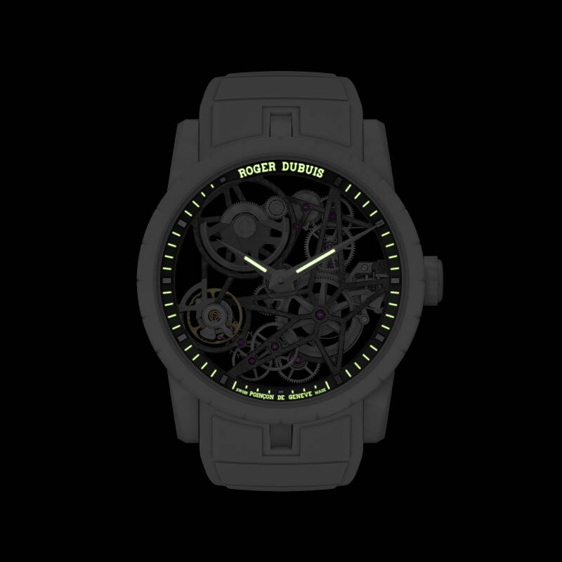 受航空航天领域中同类材料的启发,矿物复合纤维(MCF)在轻盈度和耐用性方面取得平衡,使得这款直径42毫米的时计跃升为一件艺术佳作,其表壳、表圈与表冠均由这种纯白色的高科技材质制成,展现罗杰杜彼制表厂卓绝非凡的制表工艺与超越极限的品牌精神。矿物复合纤维(MCF)由99.95%的二氧化硅构成,由片状模塑复合物(SMC)工艺制成,其结构坚固耐用,比陶瓷轻2.5倍,比SMC碳纤维轻13%,因此拥有高度可塑性,使复杂设计成为可能。罗杰杜彼在研发作品时,不但考虑了佩戴的舒适度,而且秉承了一贯的前卫美学设计理念,因而使其具有极强的稳定性,对紫外线、人造光与自然光均有着极强的抵抗力,再通过颜料的添加,进一步强化了其白色色度。为保持通体纯白的美感,以白色橡胶表带来搭配这款令人惊叹杰作。