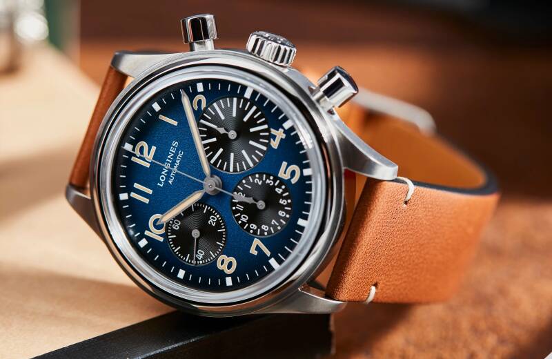 这款表本身而言并不是什么新作,而是2017年款大眼飞航的一个新版本。后者当时采用的是精钢材质打造,搭配了经典的黑色表盘,为的是还原有些虚无缥缈的原作之精髓。而在今年,浪琴带来了这个采用了新材质和新配色的全新BigEye,虽然听起来只是轻度的升级,但最终结果与之前的版本相比却有了很大的不同。现在它是由钛合金制成,外观更趋近工具风,佩戴感也变得更为舒适。与此同时,它的表盘换上了渐变蓝色的主题,并以质感强烈的粒纹、仿古色的夜光材质和对比鲜明的黑色子表盘做了点缀。虽然这一次它不再忠于历史,但它却因此变得更加新颖、更具吸引力。其内部所搭载的是优秀的专有自动机芯Cal.L688,除了装配了导柱轮机制之外,它还配备有硅游丝,用以增强防磁性能。价格:3230欧元
