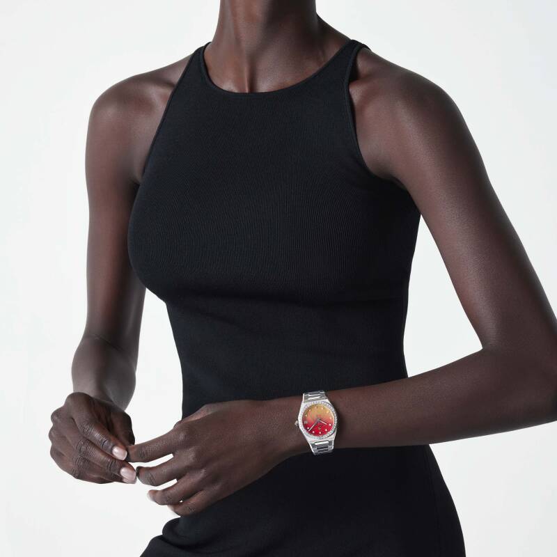 DEFY MIDNIGHT Sunset腕表的表盘,从热烈温暖的红色过渡到深黄色,自然流畅的色彩渐变,令人想起日暮时分,斜阳西沉之际,落霞满天的情景。