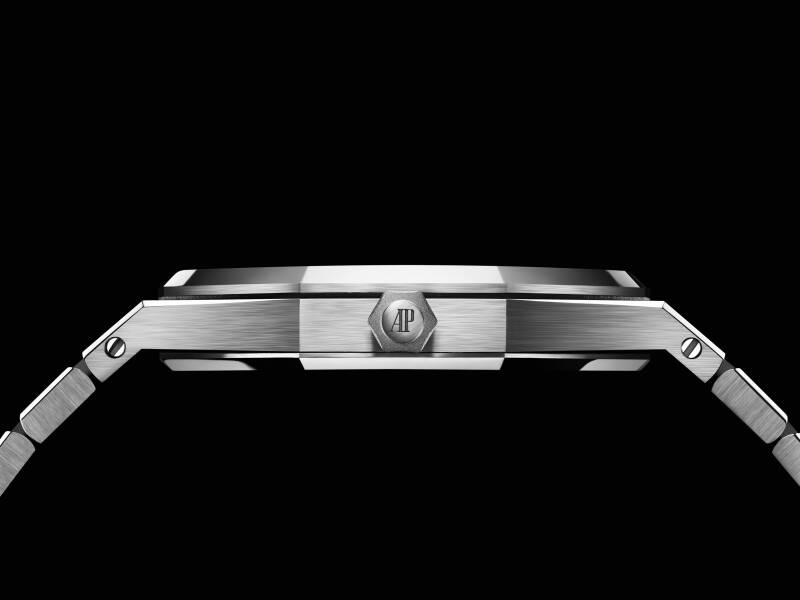 全新Calibre 7121机芯历经五年研发,构造焕然一新,拥有比Calibre 2121机芯更充沛的能量。发条盒体积更宽,赋予腕表更多的能量,确保长时间内走时精准。Calibre 7121机芯配备现代风格设计的中央自动摆陀,安装于滚珠轴承之上,通过爱彼独家研发的两个转向齿轮确保双向上链的效率。螺丝摆轮配有惯性块,直接嵌入在摆轮中,避免不必要的摩擦。机芯还搭载具有专利的超薄低能耗日期设定系统,佩戴者只需简单转动表冠即可快速调校日期。