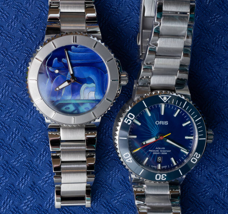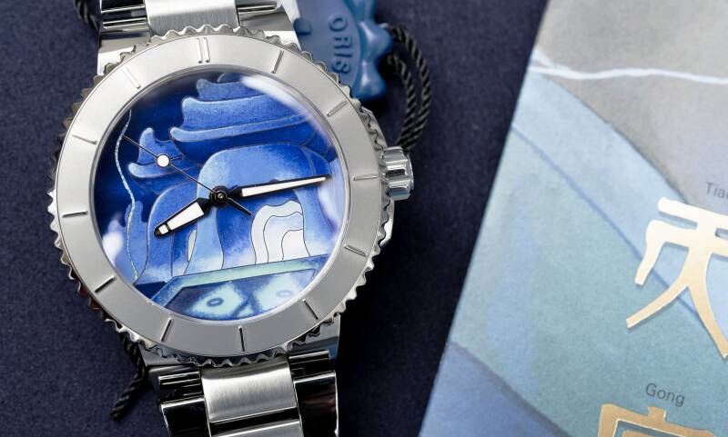 它的表盘是由景泰蓝工艺制作出来的,这是我国著名的特种金属工艺品类之一,因在明朝景泰年间盛行,使用的珐琅釉多以蓝色为主,故而得名"景泰蓝"。有关这种工艺的详尽步骤大家可以自行了解一下,这里就不多说了,因为有一个更有趣的问题摆在了我们的面前,那就是这面景泰蓝表盘究竟画的是个啥?答案就是《大闹天宫》当中,孙悟空来到海底龙宫的那一幕场景。在这里,大圣"拿"到了定海神针--如意金箍棒。那同时呢,这是一幅水下场景的艺术展现,因而豪利时为何要选择用Aquis潜水表作为载体的原因也就说的通了。