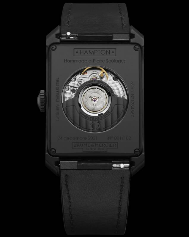 「汉伯顿系列--向皮埃尔·苏拉吉致敬」(Hampton HommageàPierre Soulages)腕表将依订单生产且限量发行102枚(与艺术家的年龄相呼应),每一枚皆带有个别编号。此表款将仅能以预订的形式购买