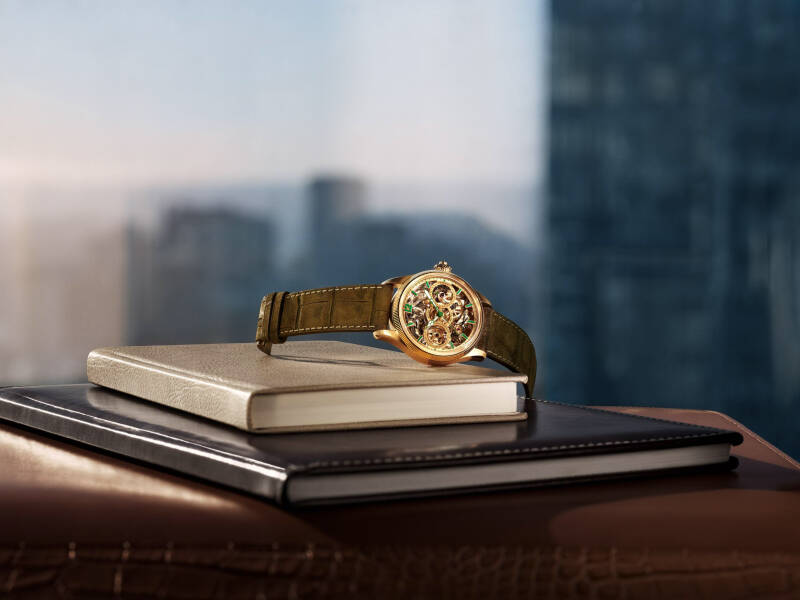 全新万宝龙1858系列反转机芯单按钮计时码表 青柠金限量款(全球18枚)搭配醒目的绿色元素,包括大教堂风格时针、分针及数字时标,配以饰有灰色衬线的绿色鳄鱼皮表带,与腕表的暖调金色相得益彰。