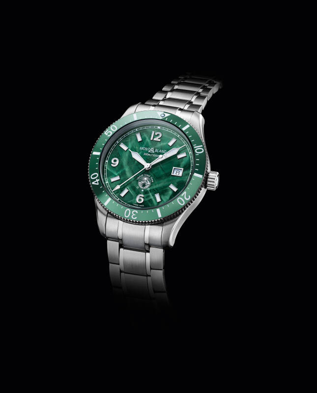 全新万宝龙1858系列潜水腕表配备三种不同颜色的表盘可供选择--冰川蓝、远山绿和玄岩黑,灵感源于不同色调的冰川冰。腕表41毫米的精钢表壳搭配双色陶瓷单向旋转表圈,表背特别镌刻立体图案,巍然立于海面的冰山以及于水下勇敢探索的潜水者栩栩如生。