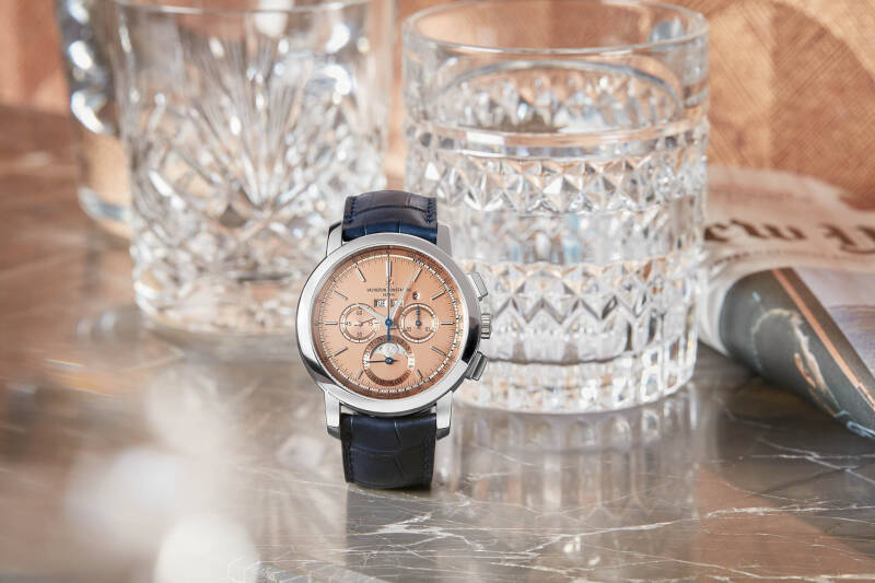 江诗丹顿推出铂金表壳与鲑鱼色表盘的Traditionnelle传袭系列万年历计时腕表