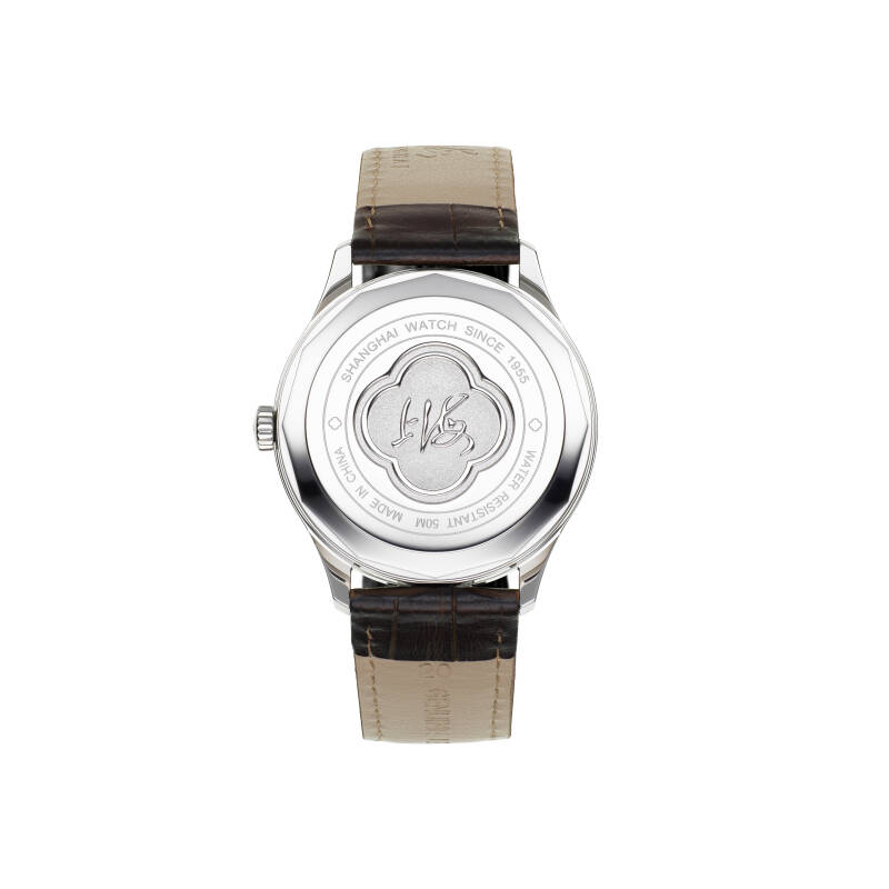 将腕表翻转,我们会看到表背以模具油压工艺复刻了60年代末的海棠花窗设计及毛体「上海」Logo,同时以现代工艺呈现多重表面处理,在窗内增添了细腻沙砾肌理,丰富视觉纵深层次。再现上世纪摩登审美的同时,令腕表宛如一枚耀眼精致而充满纪念意义岁月徽章,流转着迷人光彩。