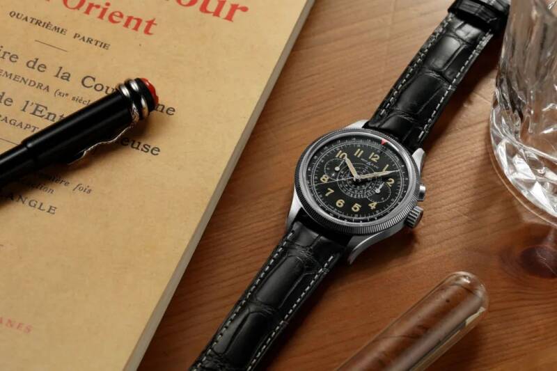 其实我们今天见到的万宝龙1858系列计时表的风格,很大程度上来自于美耐华上世纪30年代前后所出品的军用时计,比如这款最新的1858系列美耐华旋转坑纹表圈单按钮计时腕表,便是对美耐华上世纪20-30年代的一款航空军用腕表的重现。