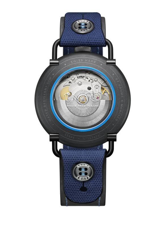 BAUME奔系列海洋限定款2.0腕表的创新结构内嵌阳极氧化铝内壳,外套再生塑料外壳,为这款完美融合设计与瑞士高级制表质量的卓越杰作注入了焕新活力。