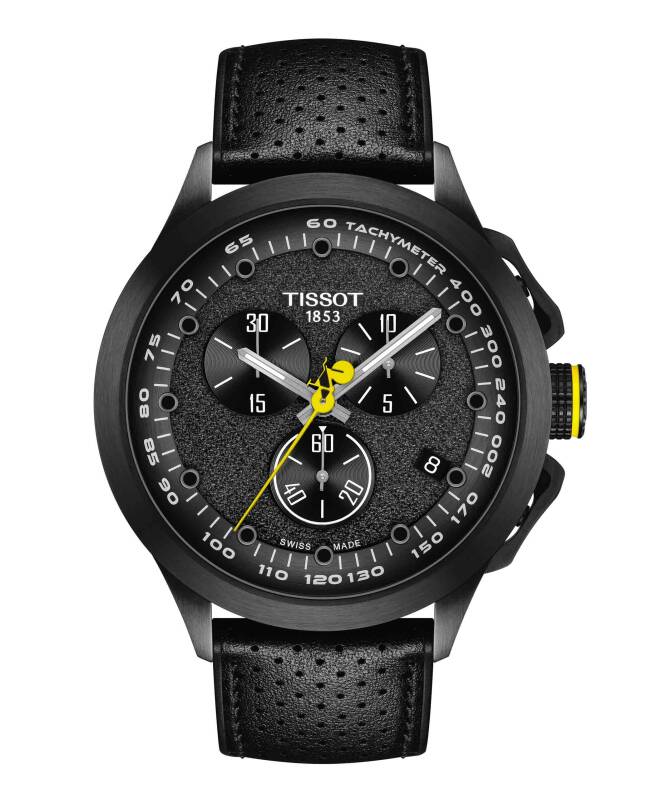 天梭竞速系列环法自行车赛特别款旨在致敬与著环法赛的伙伴关系。腕表采用环法赛代表性的黄色元素,表冠、表针等细节之处均可见灵感源于自行车部件的设计。表盘直径45毫米,表壳采用涂覆黑色PVD镀层的316L精钢及碳复合材料。雕花表后盖,刻有环法赛官方标志。搭载瑞士制造石英机芯,防水性能可抵御相当于10巴的压力。