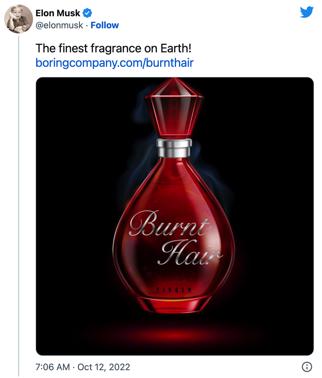 马斯克旗下“无聊公司”推“烧焦头发香水”,短短几小时狂卖 3,000 万元!